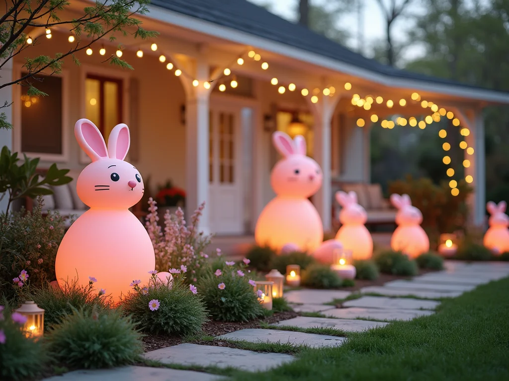 Os espetos decorativos são ótimos para dar vida a vasos e canteiros de forma rápida. Já os coelhos infláveis gigantes garantem um impacto visual imediato, ideais para quem quer algo chamativo e divertido. Esculturas maiores, como as de fibra de vidro com 2 metros de altura, se tornam o ponto focal da sua decoração.
