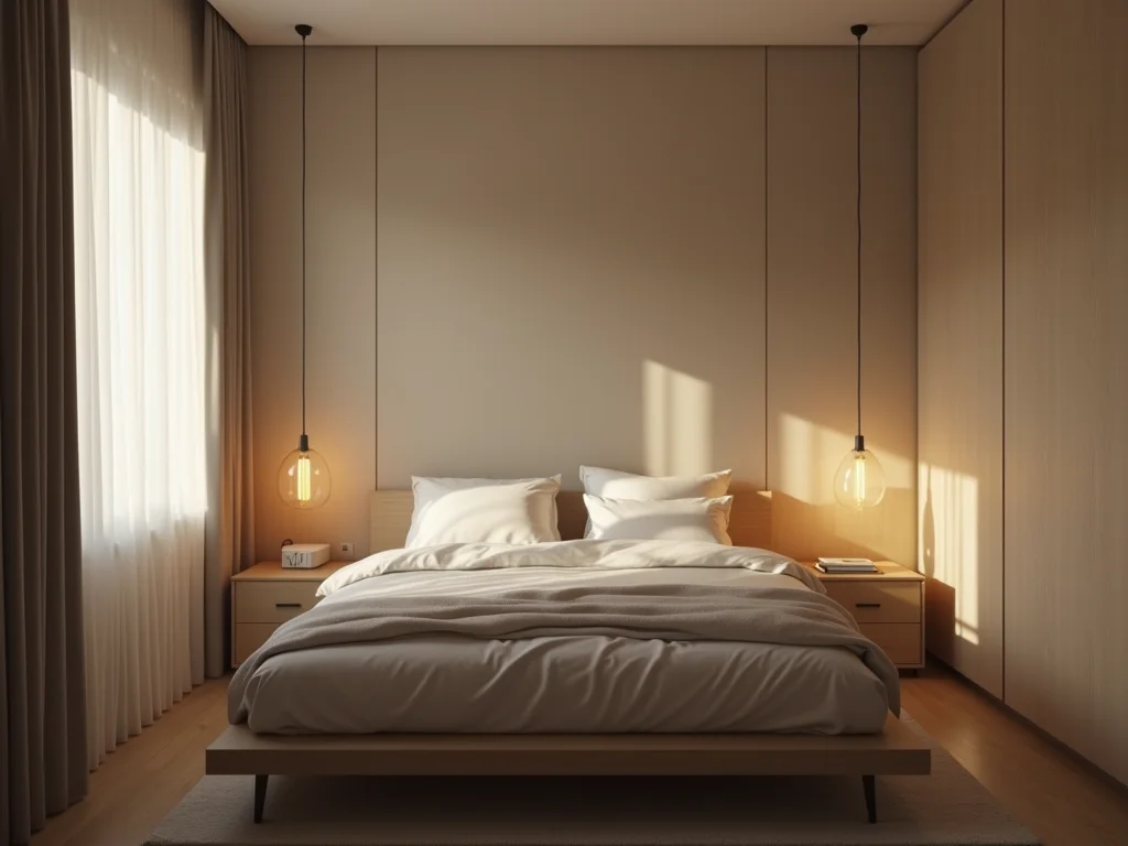 - Na Prática: Escolha uma cama com estrutura simples, sem cabeceira elaborada. Mesinhas de cabeceira flutuantes ou com gavetas discretas são ótimas. Pense em armários embutidos para maximizar o espaço.