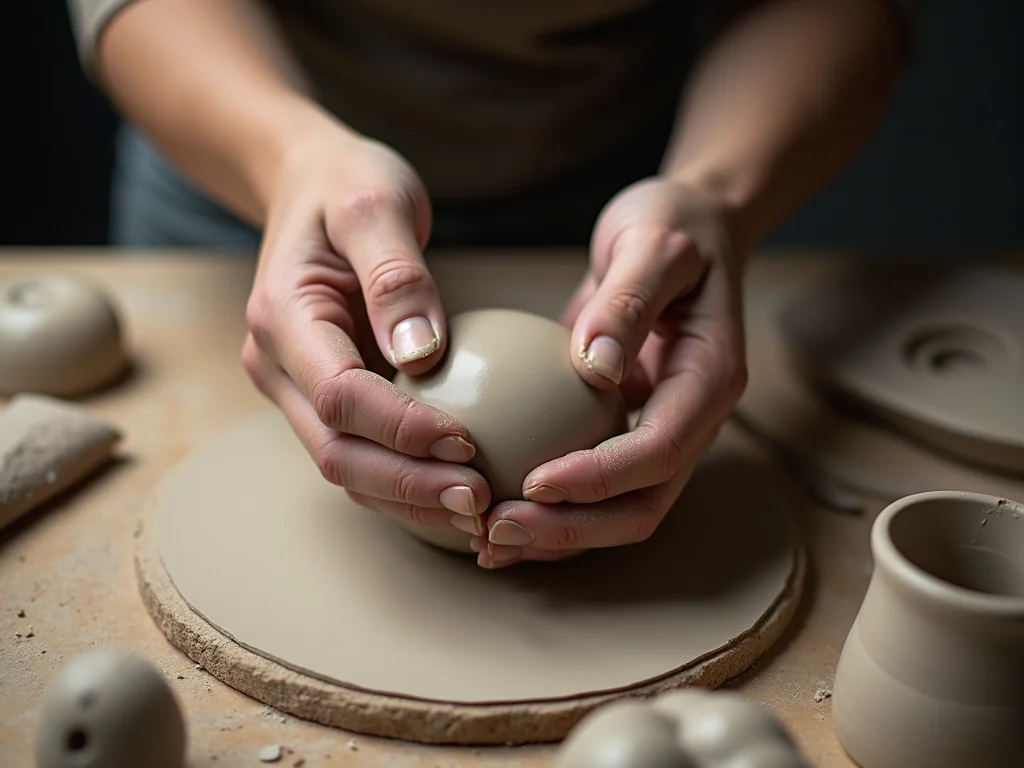 Antes de começar a modelar, é crucial preparar a argila. Isso se chama ‘wedging’ ou sova. O objetivo é remover bolhas de ar que podem causar rachaduras ou até explosões no forno. Eu faço assim: amasso a argila em formato de espiral ou de cabeça de carneiro, como se estivesse amassando pão, até sentir que ela está homogênea e sem bolhas visíveis. É um passo que faz toda a diferença no resultado final.