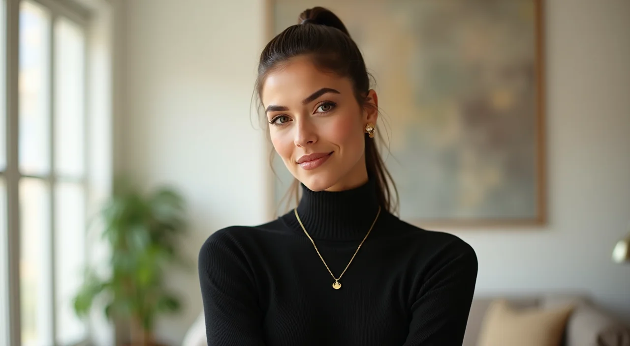 Seu primeiro passo hoje: Abra seu guarda-roupa e experimente uma gola alta com brincos volumosos. Veja no espelho como o conjunto transforma sua silhueta em 30 segundos.