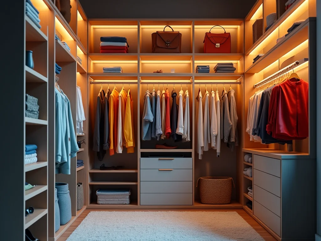 - Iluminação é chave: Uma boa iluminação dentro do armário ajuda a visualizar melhor as cores e facilita na hora de escolher o que vestir.