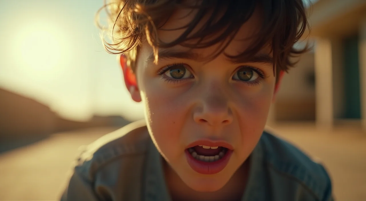 Um personagem em um momento de triunfo em um filme de superação, com iluminação forte vinda de cima, destacando a expressão de alegria e alívio.