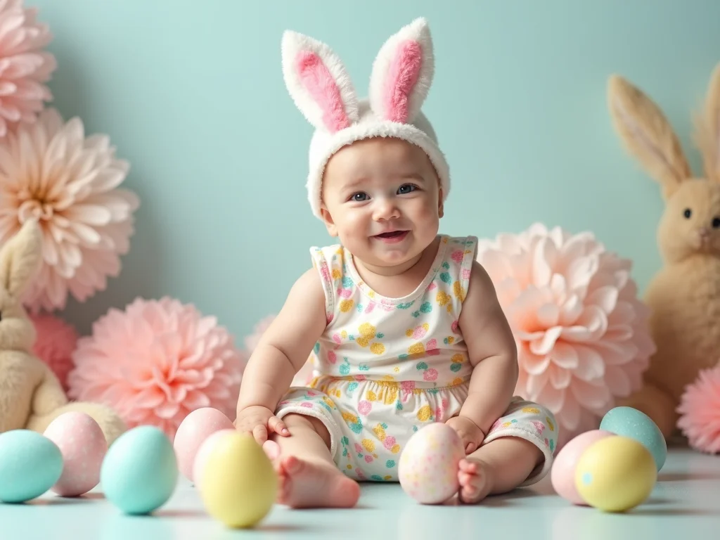 Quais acessórios são essenciais para fotos de Páscoa de bebê?